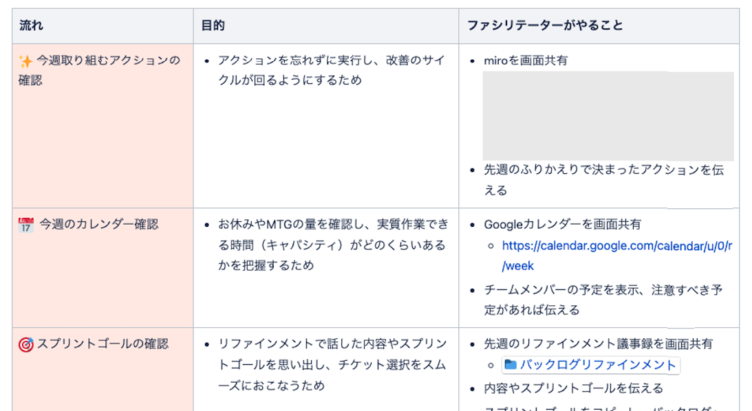 持ち回り制を導入する際、ファシリテーションが得意でない開発者も当然いるので、誰でも安心してできるように手順書を作って共有したのですが、その評判が上々でした。